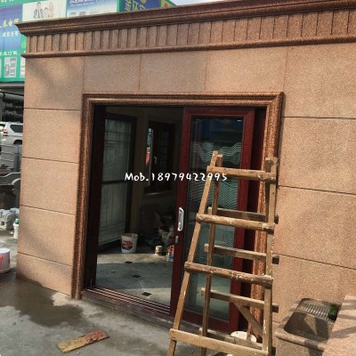 荔枝面帝王紅石材幕墻案例 與玻璃窗戶搭配