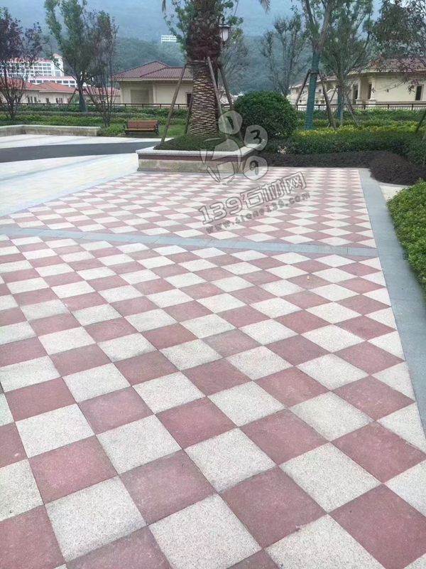 雞血紅+遂昌白花崗巖300*300鋪地對(duì)角 菱形效果 鋪地搭配 立體感強(qiáng)