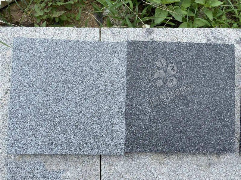 羅田芝麻灰噴砂面 提色與原石對比 提色芝麻灰可以替代芝麻黑花崗巖 顏色更深