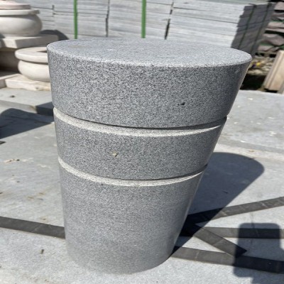 圓柱形羅田芝麻灰車擋柱,外表光面,工藝精湛,造價略高。