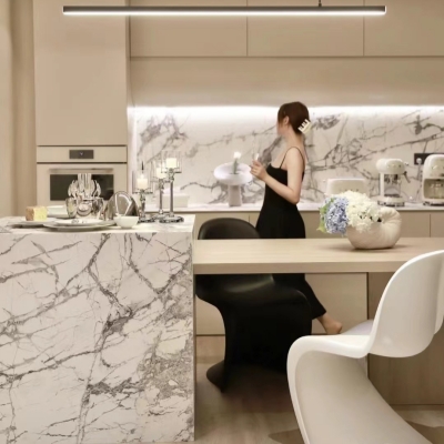 溫暖和舒適感:寒江雪大理石在觸感上比較溫暖,給人一種舒適的感覺。這使得餐廳在使用時更加舒適,增加了浸泡餐廳時的愉悅感。