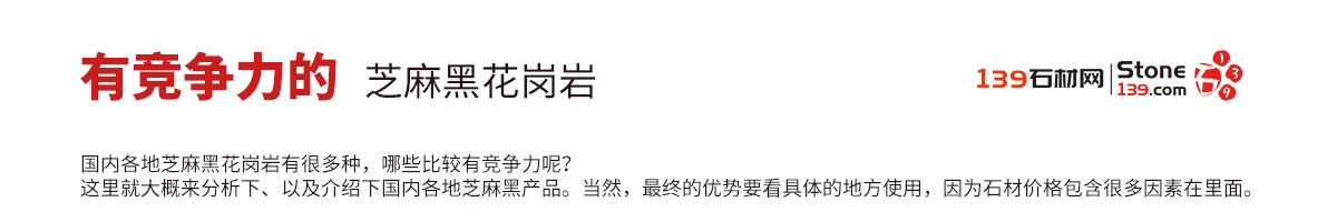 國內(nèi)各地芝麻黑花崗巖有很多種,哪些比較有競爭力呢?這里就大概來分析下、以及介紹下國內(nèi)各地芝麻黑產(chǎn)品。當(dāng)然,最終的優(yōu)勢(shì)要看具體的地方使用,因?yàn)槭膬r(jià)格包含很多因素在里面。