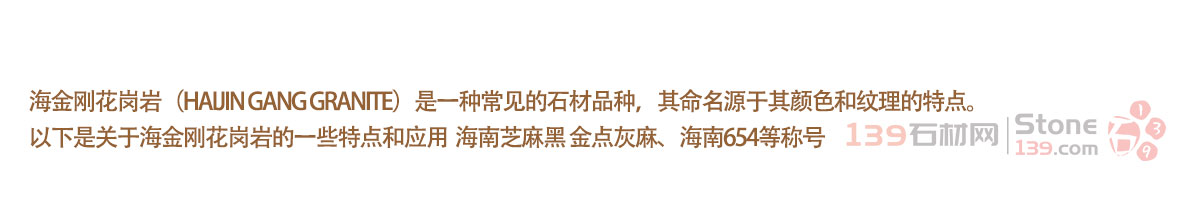 海金剛花崗巖(Haijin Gang Granite)是一種常見(jiàn)的石材品種,其命名源于其顏色和紋理的特點(diǎn)。以下是關(guān)于海金剛花崗巖的一些特點(diǎn)和應(yīng)用 海南芝麻黑 金點(diǎn)灰麻、海南654等稱號(hào)